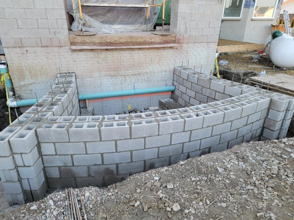 Retaining walls, steps, planters, and structural block installations.